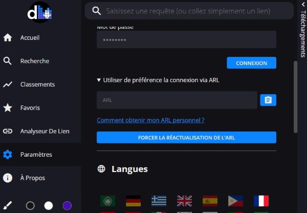 - Accédez à Paramètres et connectez-vous à votre compte Deezer. Vous pouvez également cliquez sur Utiliser de préférence la connexion via ARL. Si vous ne savez pas comment l'obtenir, cliquez sur le lien bleu ci-dessous pour un didacticiel détaillé.